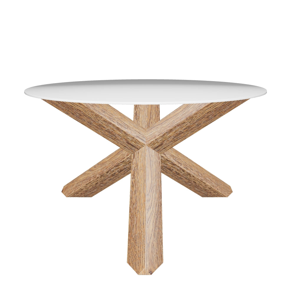 The Bariccade Dining Table is a centerpiece of industrial elegance and natural beauty. It features a 130 cm-diameter top crafted from tempered glass, supported by a robust base built from century-old oak railway tram timbers finished in beeswax. Standing at 75 cm height, this sculptural table merges transparency, texture, and heritage materials—making it a striking statement piece for dining rooms, offices, or collaborative spaces.